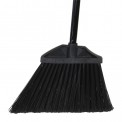 Our Large Angle Broom features washable, sanitary, black PET flagged bristles that sweep the finest particles. The broom has a 48" x 13/16" black steel handle with swivel hang cap that will not crack, warp, or splinter.