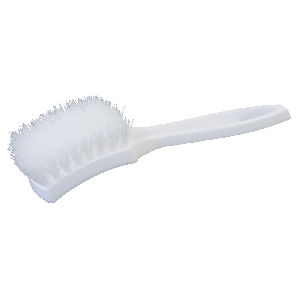 The hand-held Carpet Spotting Brush scrubs heavier, compressed soils on carpet pile without injuring the fibers.