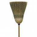 The broomcorn fiber comes from the tassel of the sorghum stalk. Broomcorn lasts longer and sweeps better because each fiber is covered with hair-like follicles that trap and hold dirt particles. It is water-resistant and wears very well, making it the premium broom fiber. It is suitable for any floor surface.