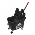 Our Premier Downpress Mop Bucket & Wringer has a 32-35 quart bucket and is made for use with up to 32 oz. mops.The downpress wringer increases leverage and reduces fatigue.