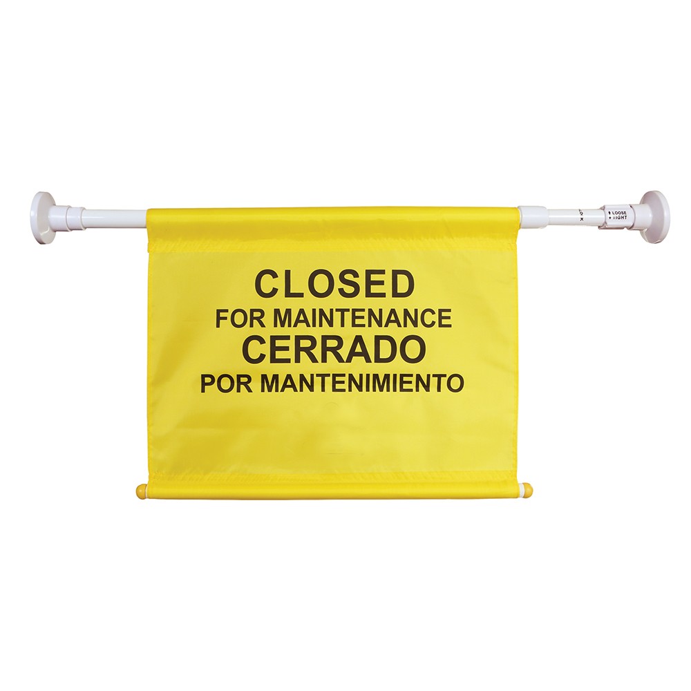 Our bright yellow Hanging Safety Sign communicates the necessary warning in English and Spanish to maintain safety. The adjustable pole extends 38"-52" to fit all door frames.