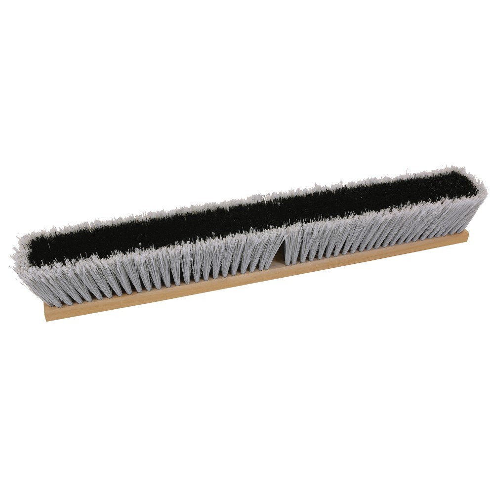 Our Multi-Purpose Sweep's 3" flagged gray polystyrene border controls dust and an unflagged medium stiff black polypropylene center loosens dirt. The hardwood block has two threaded holes.
