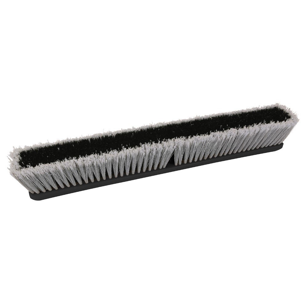 Our Combo Sweep's 3" flagged gray polystyrene border controls dust and an unflagged medium stiff black polypropylene center loosens dirt. This sweep is ideal for food service and industrial applications where scrubbing takes place on wet or dry surfaces.