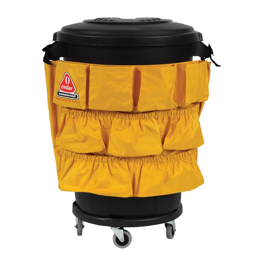 Our versatile Gladiator™ Caddy Bag fits 32 or 44 gallon trash containers. The bag features 9 elasticized pockets that hold necessary cleaning supplies.