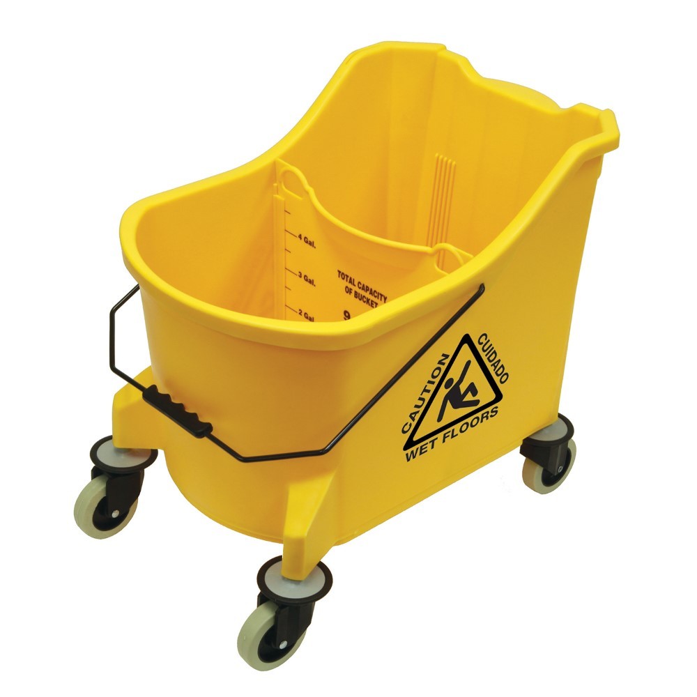 Our MaxiPlus® Bucket features a 36 quart bucket with divided well separating clean and dirty water for cleaner mopping. The bucket has a large focused pour spout, easy lift handle with grip, and built-in handle on back of bucket assist in emptying.