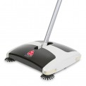 - Non-electric floor sweeper picks up wet and dry debris