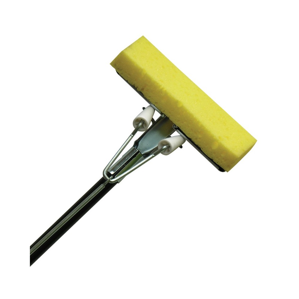Our MaxiMatic™ Sponge Mop has a 9" polyester absorbent, durable sponge that leaves floors cleaner and drier. The butterfly-style heavy gauge metal frame folds in half to wring mop keeping hands dry.