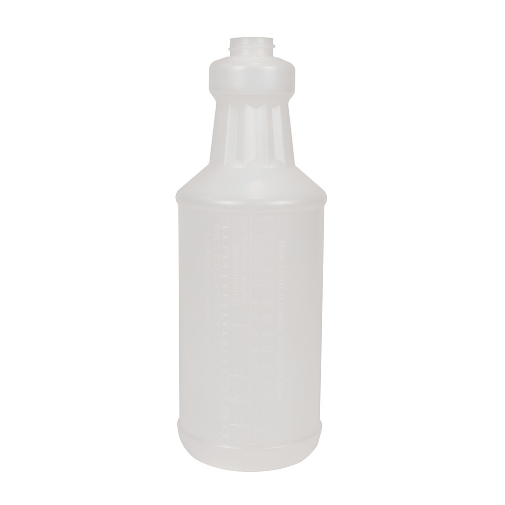 Our 32 oz. Spray Bottle is equipped with molded-in dilution scale allows proper proportioning of chemicals. The tapered neck provides a more comfortable grip during use with trigger sprayer.